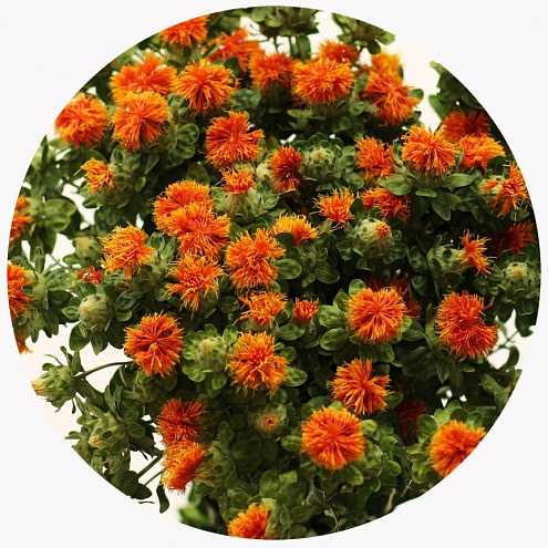 Сафлор - растение из семейства Астровые. Культивируется с античных времён как краситель для тканей. Латинское название «carthamus» и происходит, собственно, от арабского слова «картум» - красить. Помимо основного, имеет ряд обиходных названий: американский шафран, дикий шафран, среднеазиатский репейник, ложный шафран, красильный чертополох, крокос.