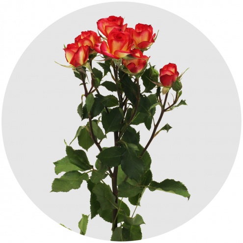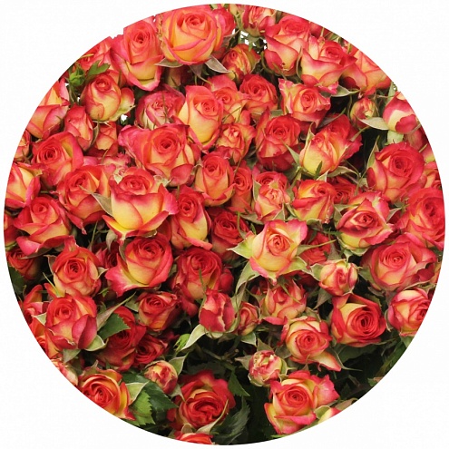 "Летний танец". Популярная двухцветная роза. Маленькие жёлто-красные бутончики, словно танцуя, играют переливами цвета от тёплого к жаркому...