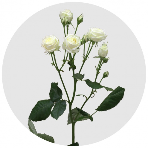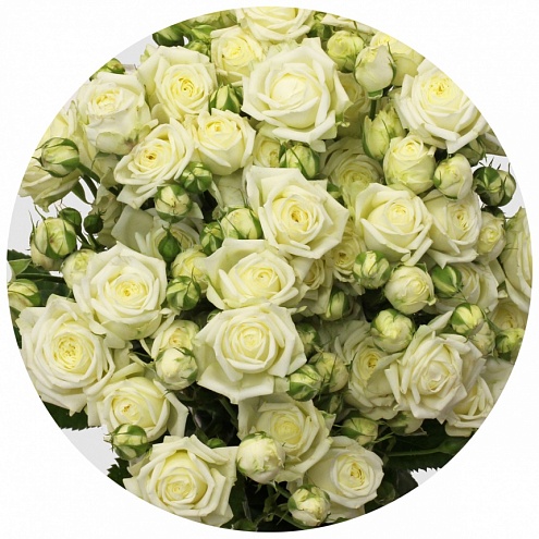 Кустовая роза белового цвета с желтовато-кремовой серединкой. Очень популярна для составления свадебных букетов; прекрасно сочетается с другими цветами и очень достойно выглядит в монобукете.