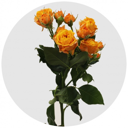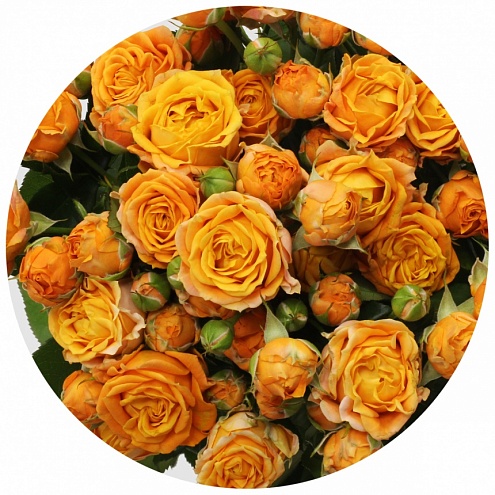 Кустовая ярко-оранжевая роза. Чрезвычайно позитивный оттенок; две-три веточки этих замечательных "коралловых пузырьков" - и хорошее настроение обеспечено.