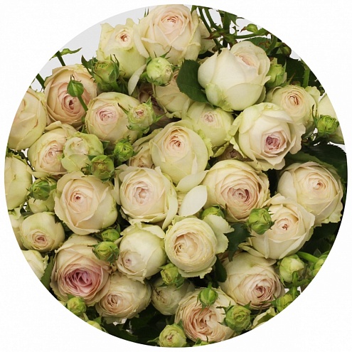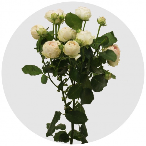 "Фарфоровые кружева" - бело-розовая пионовидная кустовая роза. Замечательно, "картинно" смотрится в монобукете; прекрасно дополняет составные букеты, не уходя при этом на второй план.
