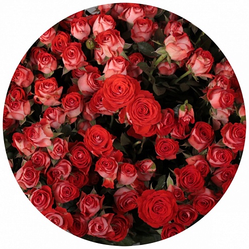 Двухцветная кустовая роза. Цвет меняется от бледного-розового к красно-оранжевому. Бутон плотный, классической формы.