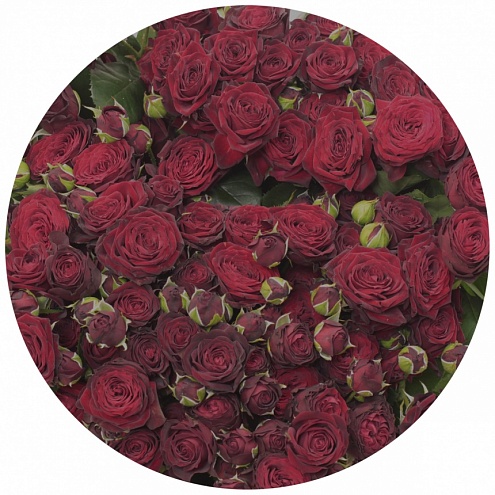 Тёмно-бордовая кустовая роза. Очень эффектная, "торжественная", или "вечерняя". Миниатюрность только добавляет ей изысканности и очарования. Отличный вариант, чтобы выразить вполне определённые чувства и при этом оказаться оригинальным.