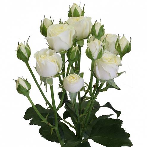 Популярная кустовая роза нежного бело-кремового цвета. Длина стебля 40-45 см.