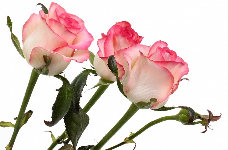 Бутон классической бокаловидной формы, нежные бело-розовые лепестки, сладковатый аромат средней интенсивности. Отличный подарок по любому поводу.