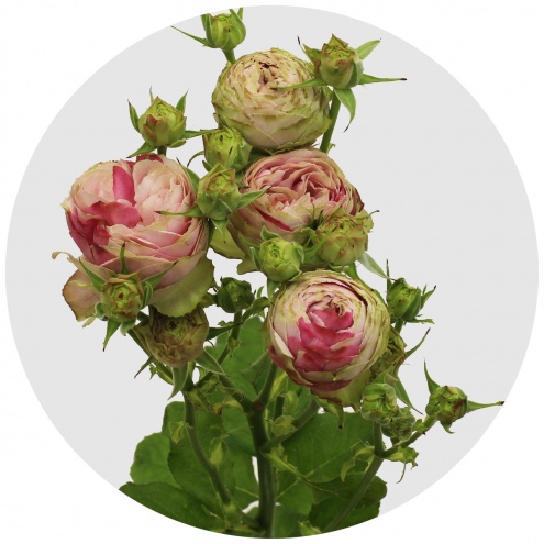 "Розовое кружево" - так называется эта оригинальная пионовидная роза. Плотные маленькие бутоны, напоминающие бубенчики, неоднородны по окрасу - от светлого до тёмно-розового в зелёной рубашке. Эти непредсказуемые, можно сказать, хаотичные переливы цвета на "капустных" завихрениях лепестков создают видимость некоего кружева. Ну а то, что кружево розовое, только добавляет пикантности этому неординарному цветку.