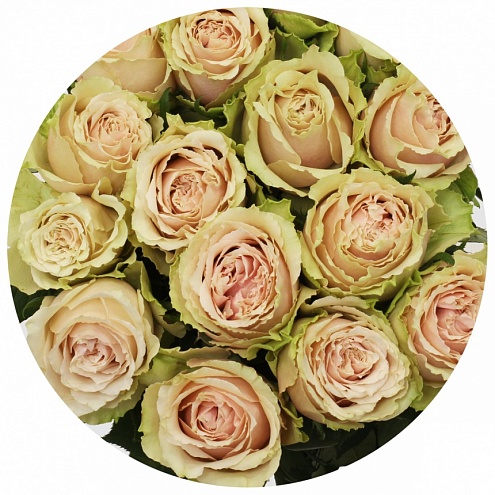 Bell Katharina - двухцветная роза на очень мощном стебле. Лепестки туго скрученных бутонов классической формы имеют светло-розовый окрас с салатово-зелёной каймой сверху и такого же, салатово-зелёного цвета, рубашку.