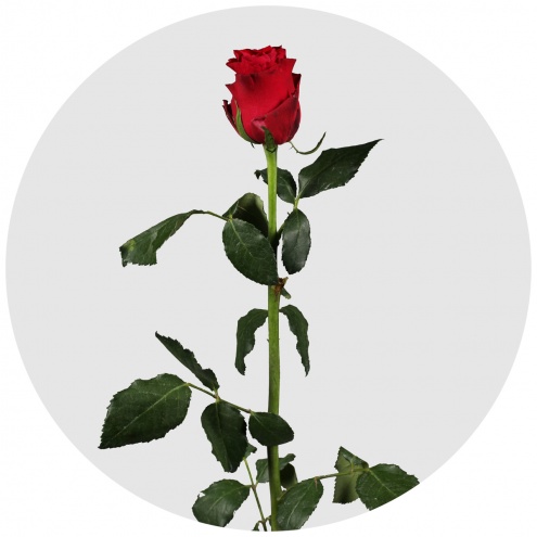 Кенийская крупноголовая роза очень насыщенного, алого цвета. Высота стебля 40-80 см; раскрытие бутона - умеренное.