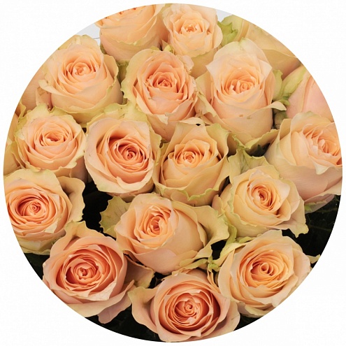 Harmony in Peach (Гармония в персике). Роза тёпло-розового или, как ещё называют, "лососевого" оттенка. Сорт из недавно выведенных; появился на рынке в 2017 году.