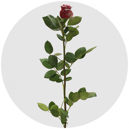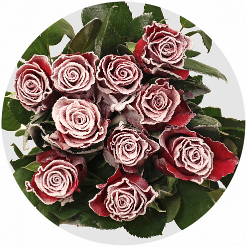 Красная роза, покрытая воском и "заснеженная". Для зимних и, в особенности, новогодних букетов и композиций.