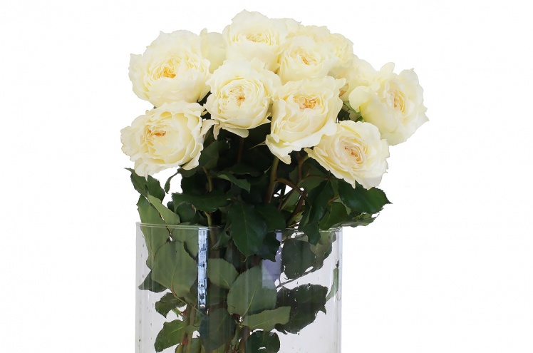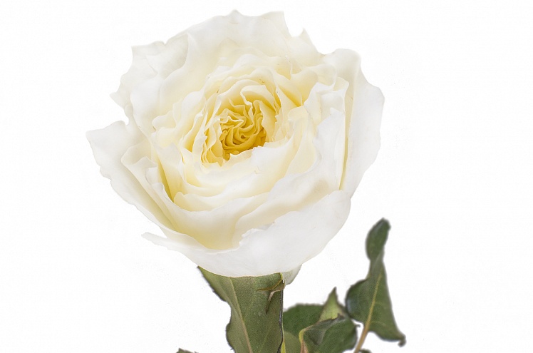 Роза в романтическом, "старинном", стиле. Белый, словно кружевной, цветок в форме плоской розетки из более чем полутора сотен нежных лепестков.