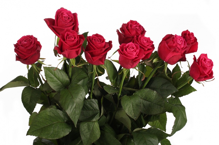 Небольшого размера роза эффектного вишнёво-розового цвета.