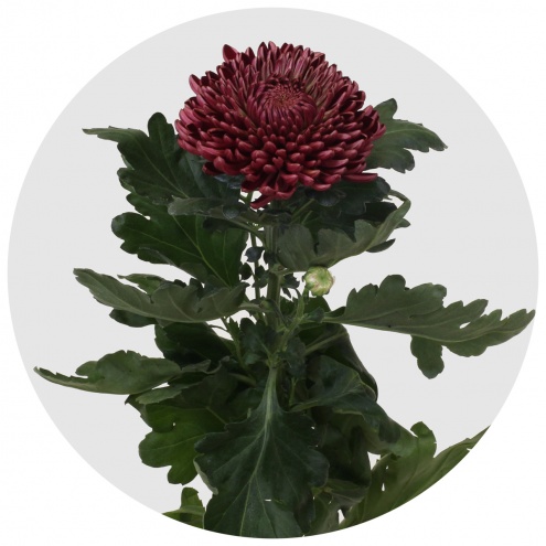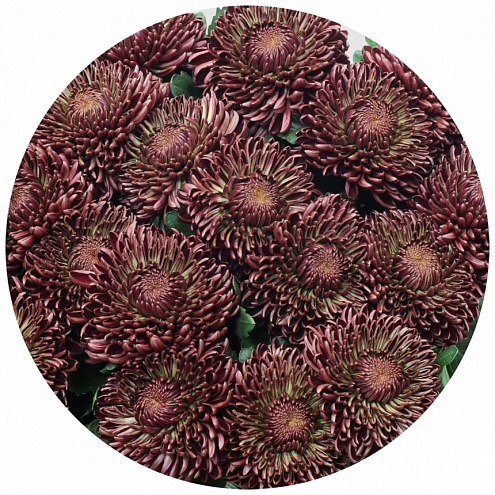 Очень крупная, очень пышная, очень насыщенного винного цвета хризантема "Бигуди". Шутливое название довольно точно характеризует её внешний вид, напоминающий шапку густых кудрявых волос.