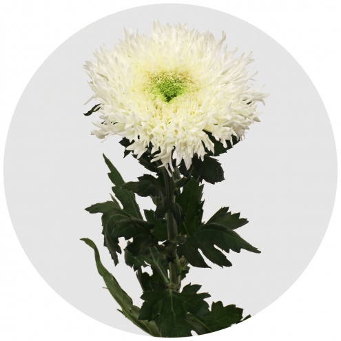 Довольно необычного вида хризантема. Тоненькие, мелкие, но густо растущие лепестки выглядят нежно и эфемерно. Размер соцветия 12-15 см, длина стебля до 80 см.
