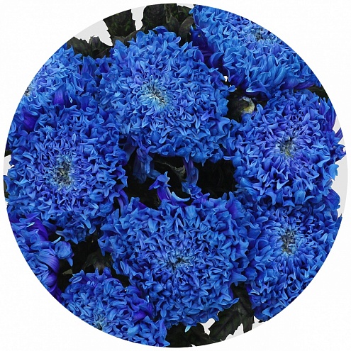 Хризантема сортосерии "Эйнштейн" в крашеном варианте. Необходимый оттенок получается путём окрашивания белой хризантемы при помощи добавления в воду цветных питательных растворов.