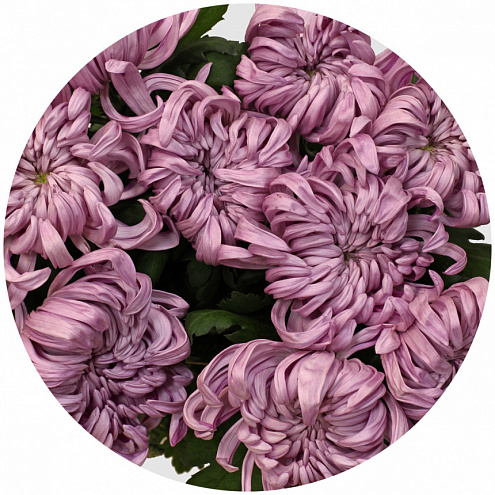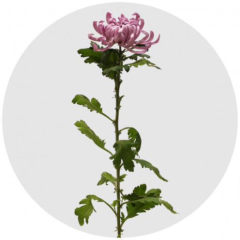 Розовая, холодного степенного оттенка, хризантема из сортосерии Вена (Viena). Пышная шапка из тонких, длинных и, словно вьющихся, лепестков выглядит очень изящно и необычно.