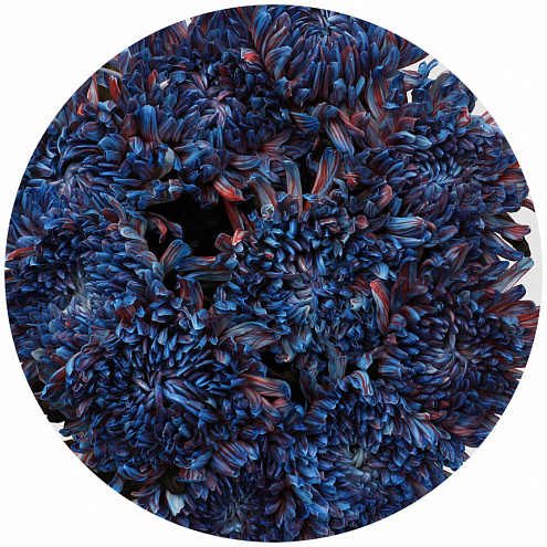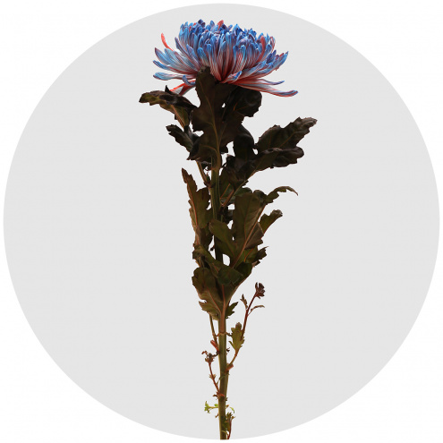 Хризантема с большим махровым цветочным куполом на длинном стебле. Необходимый оттенок получается путём окрашивания белой хризантемы при помощи добавления в воду цветных питательных растворов.