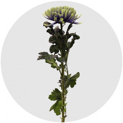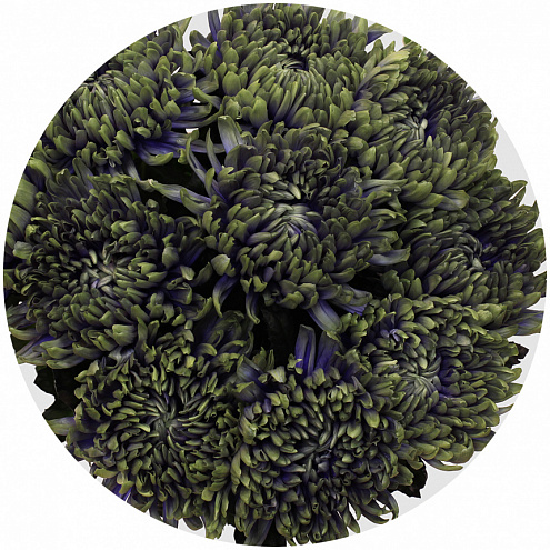 "Пурпурный лес". Хризантема с большим махровым цветочным куполом на длинном стебле. Необходимый оттенок получается путём окрашивания белой хризантемы при помощи добавления в воду цветных питательных растворов.