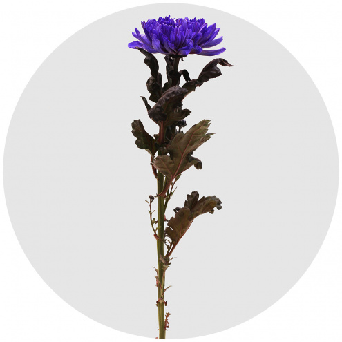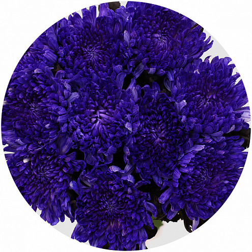"Экспрессия". Хризантема с большим махровым цветочным куполом на длинном стебле. Необходимый оттенок получается путём окрашивания белой хризантемы при помощи добавления в воду цветных питательных растворов.