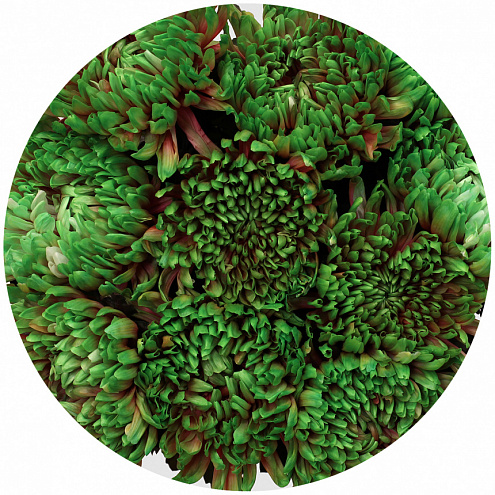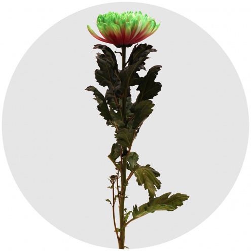 "Баблишес". Хризантема с большим махровым цветочным куполом на длинном стебле. Необходимый оттенок получается путём окрашивания белой хризантемы при помощи добавления в воду цветных питательных растворов.