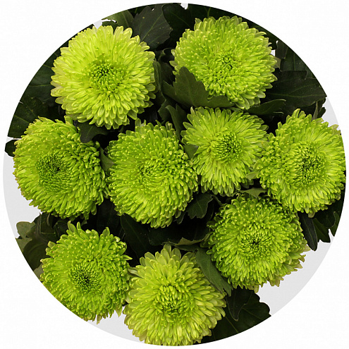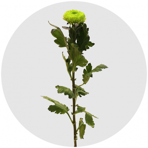 Коко зелёная - хризантема из индийской группы с шаровидными бутонами ярко-зелёного цвета. Диаметр цветка - 9,5-10 см.