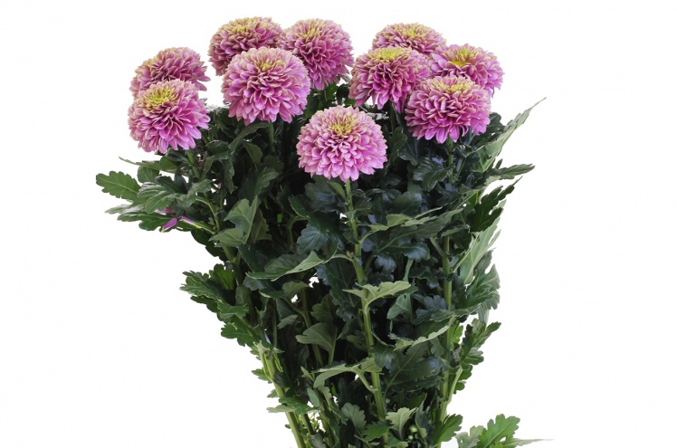 Нежно-розовый цветок с зелёной сердцевиной диаметром 4-7 см. Крупный, до 60 см, стебель с густой листвой. Травянистый аромат.
