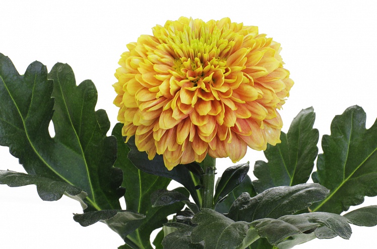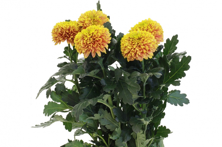 Солнечно-оранжевый цветок с зелёной сердцевиной диаметром 4-7 см. Крупный, до 60 см, стебель с густой листвой. Травянистый аромат.