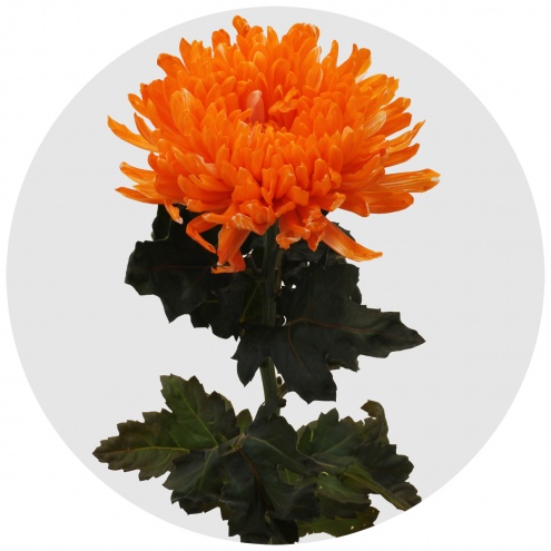 Хризантема с большим махровым цветочным куполом на длинном стебле. Необходимый оттенок получается путём окрашивания белой хризантемы при помощи добавления в воду цветных питательных растворов.