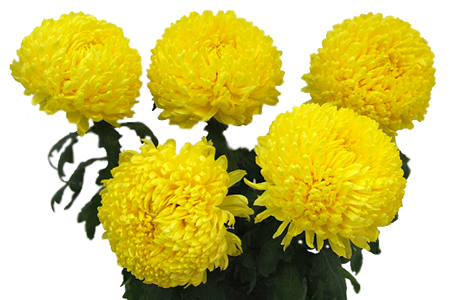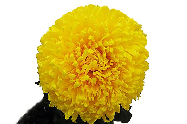 Махровая крупноцветковая хризантема. Большая, до 14 см, шапка из ярких жёлтых "взъерошенных" лепестков, скрывающих сердцевину. Порадует получателя и придаст позитива любому событию.