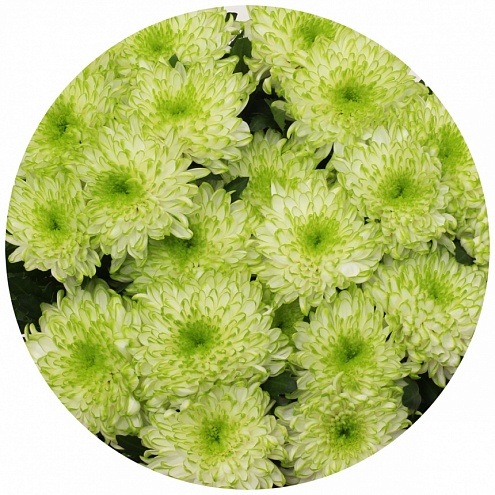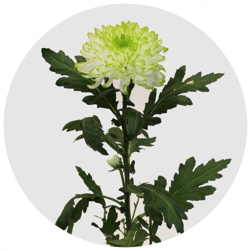 Крупная хризантема, диаметр цветка до 14-20 см, длина стебля до 100 см. Цветки махровые, полушаровидные. Цвет - "лайм" - бело-салатовый с лимонно-зелёным кантом.