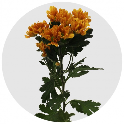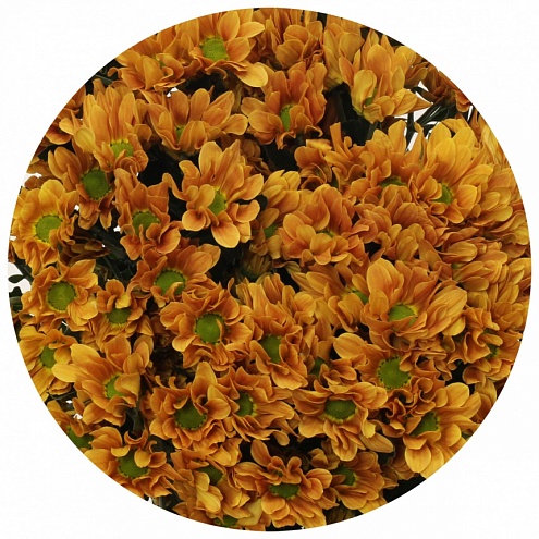 Като оранжевая - кустовая хризантема от Dekker Chrisanten, Скорее рыжего, нежели оранжевого цвета с зелёной серединкой. Диаметр цветка - до 6 см.