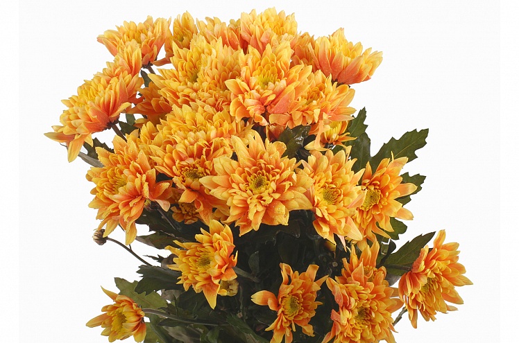 Популярнейший, если не сказать знаменитый, сорт хризантемы. Нежные лепестки собраны в многослойные соцветия, изящество которых оценено флористами всего мира. Диаметр цветка - 4-7 см, длина стебля до 60 см.