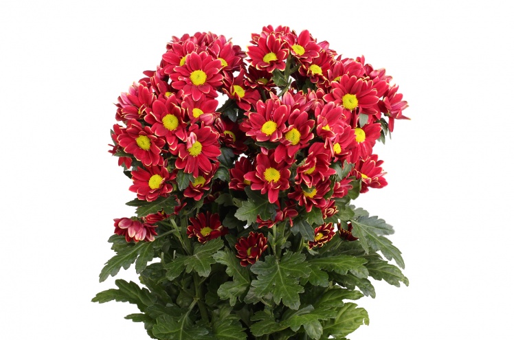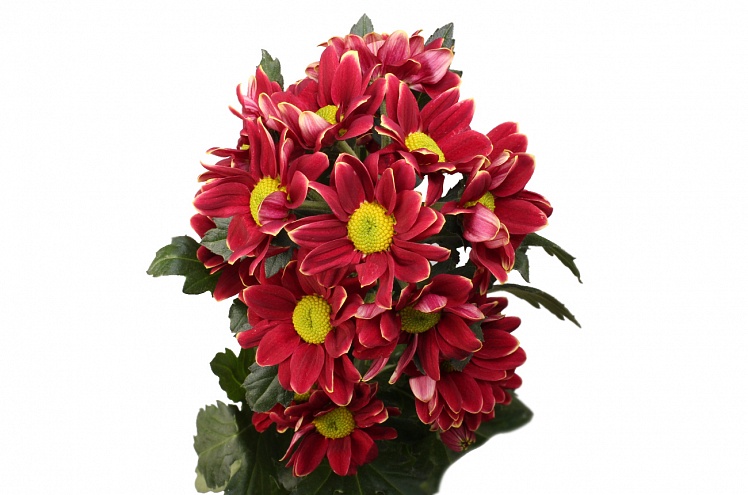 Красивая, яркая, очень эффектная хризантема. Лепестки лиловые с жёлтой кромкой, середина цветка жёлто-зелёная. Диаметр цветков - 7-10 см, длина стебля - до 70 см. Стебель мощный, с густой листвой насыщенного зелёного цвета. Аромат свежий, травянистый.