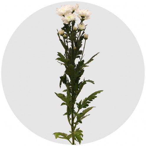 Авиатор - новый сорт полумахровой кустовой хризантемы голландской селекции. Размер соцветий – 7,5 см. Язычковые лепестки белого цвета, прямые, широкие, растут в четыре ряда вокруг полуприкрытой зеленой сердцевинки.
