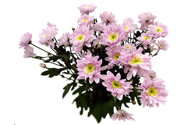 Полумахровая кустовая хризантема розового оттенка. Ромашковидный цветок размером до 5 см с зелёной сердцевинкой, крепкий высокий стебель.