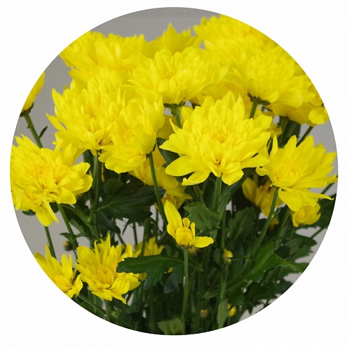 Популярнейший, если не сказать знаменитый, сорт хризантемы. Нежные лепестки собраны в многослойные соцветия, изящество которых оценено флористами всего мира. Диаметр цветка - 4-7 см, длина стебля до 60 см.