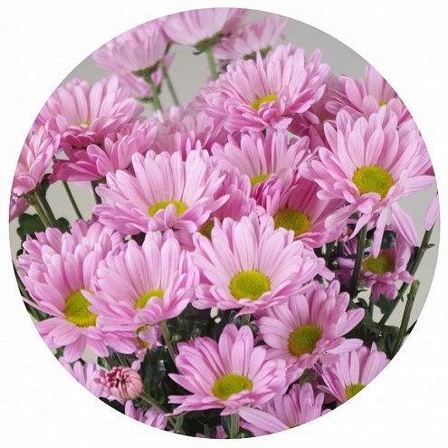 Катинка (Катенька) - кустовая ромашковидная хризантема. Такая же милая, как и её название. Цветок розовый, с зелёной сердцевинкой, диаметр 5-6 см, длина стебля - до 70 см.