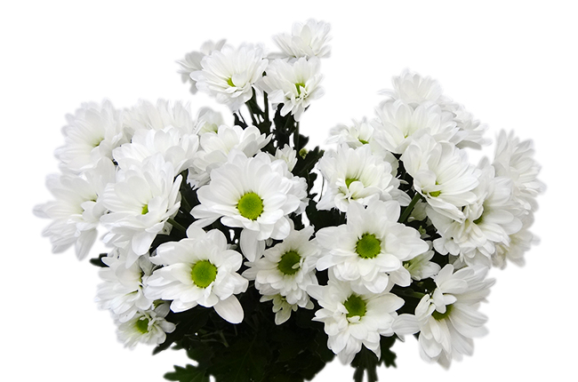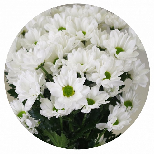 Популярная, очень напоминающая ромашку хризантема. Белоснежные лепестки и зелёная серединка; диаметр цветка 5-7 см., длина стебля до 70 см. Молодой сорт, выведен в 2004 году.