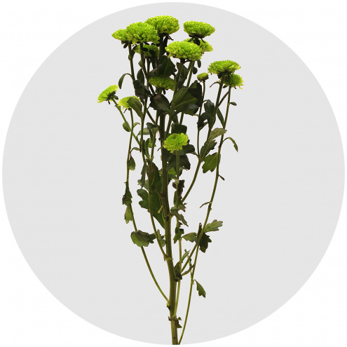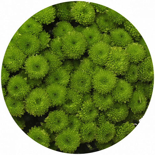 Хризантема индийская кустовая "Santini Lorenzo". Диаметр цветка - 2,5 - 3 см. Цвет - ярко-зелёный.