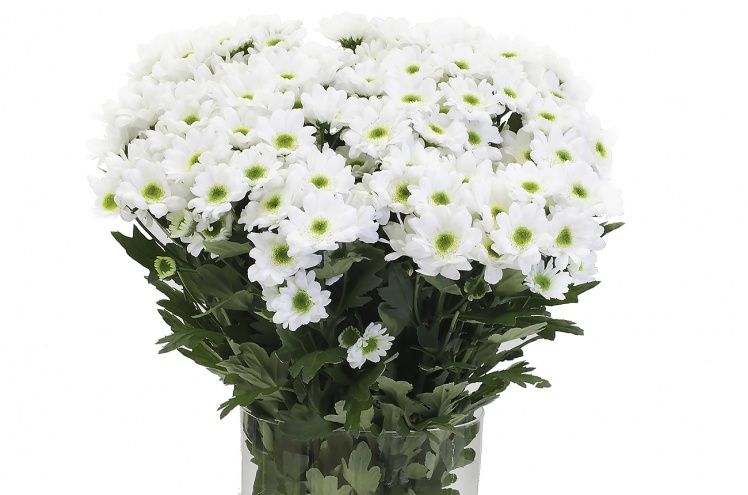Название происходит от сложения вторых частей слов (Chry)sant («хризантема») и (M)ini («мини» — маленький). Эти милые миниатюрные цветы очень популярны и очень любимы флористами, т.к. являются хорошей основой или дополнением для букета. Хризантема Сантини Ява - белая с зелёной серединой.