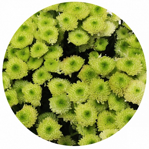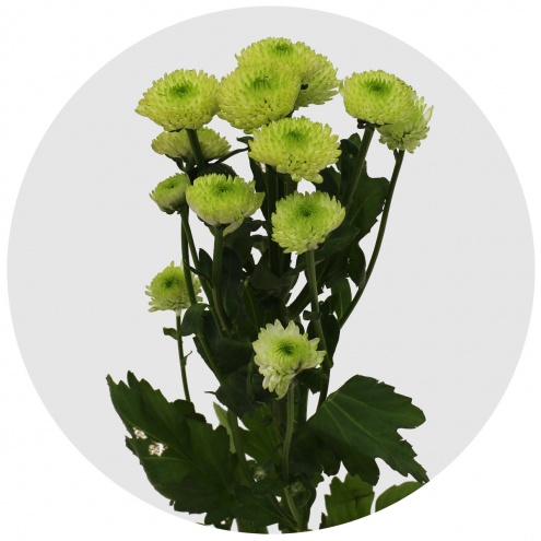 Сантини - кустовая мини-хризантема. Название происходит от сложения вторых частей слов (Chry)sant («хризантема») и (M)ini («мини» — маленький). Эти милые миниатюрные цветы очень популярны и очень любимы флористами, т.к. являются хорошей основой или дополнением для букета. Хризантема Сантини Ферри имеет светло-зелёный оттенок, сгущающийся к центру до тёмно-зелёного.