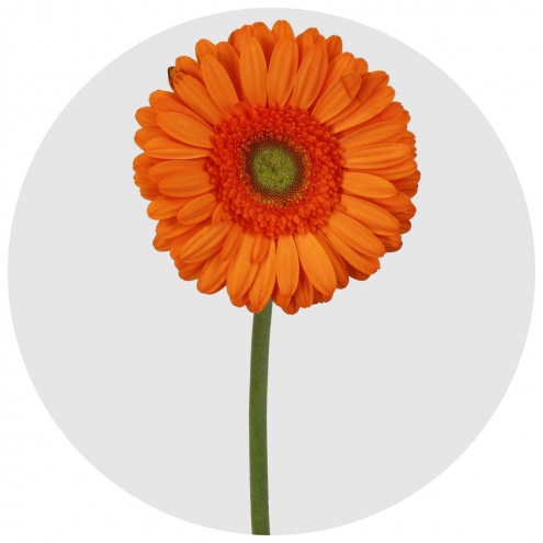 Ярко-оранжевая, "мандариновая" гербера-стандарт.