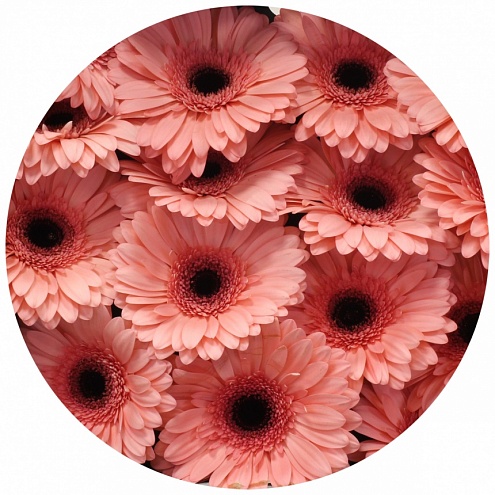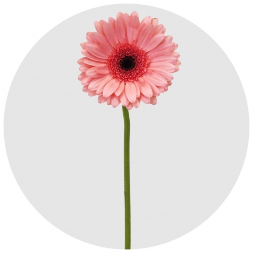 "Скала" - светло-розовая гербера с чёрной серединой.