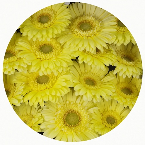 Лимонно-жёлтая гербера с "цитрусовым" названием. Спокойный, лишённый крикливости оттенок не будоражит, а успокаивает.