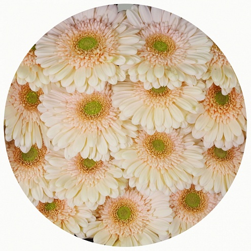 Гербера Эстэйт. Гербера в пастельных, светло-кремовых тонах с зеленоватой серединкой. Тёплая, спокойная и умиротворённая гамма, как воскресное летнее утро.