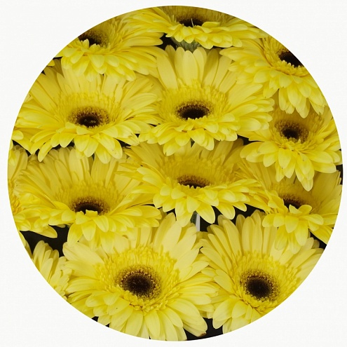 Светло-жёлтая гербера с чёрной серединкой. Спокойный, приятный, умеренный оттенок. Цветы, которые можно подарить без всякого повода и намёка. Просто так.
