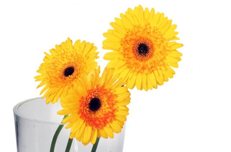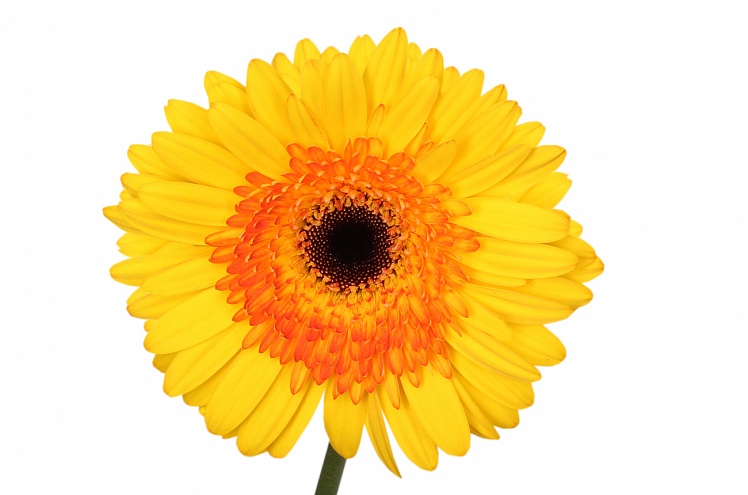 Яркая жёлто-оранжевая гербера. Красивый цветок семейства астровых, напоминающий большую ромашку. Поэтому цветок имеет второе название - transvaal daisy — «трансваальская ромашка». Цветок кажется очень естественным и простым, "природным", но в то же время он довольно крупный и пышный.