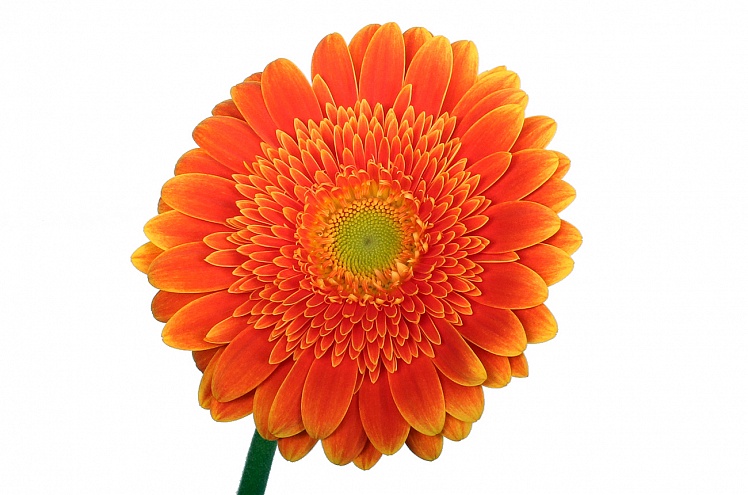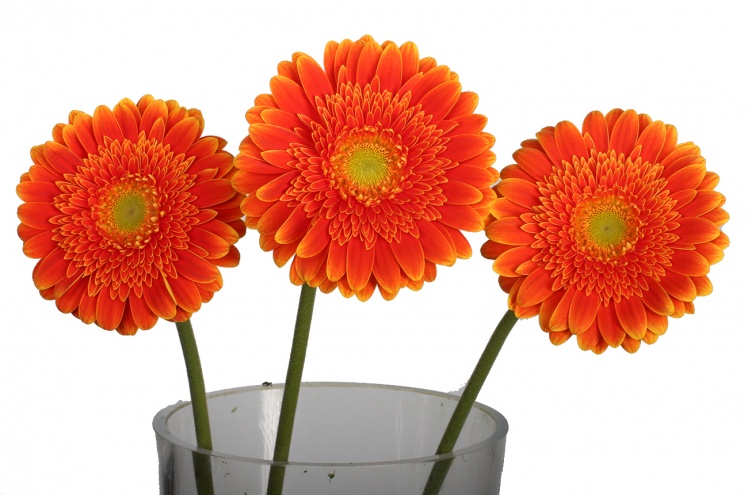 Ярко-оранжевая гербера, длина стебля до 70 см. Красивый цветок семейства астровых, напоминающий большую ромашку. Поэтому цветок имеет второе название - transvaal daisy — «трансваальская ромашка». Цветок кажется очень естественным и простым, "природным", но в то же время он довольно крупный и пышный.