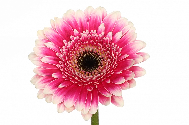 Оригинальная бело-розовая гербера. Красивый цветок семейства астровых, напоминающий большую ромашку. Поэтому цветок имеет второе название - transvaal daisy — «трансваальская ромашка». Цветок кажется очень естественным и простым, "природным", но в то же время он довольно крупный и пышный.