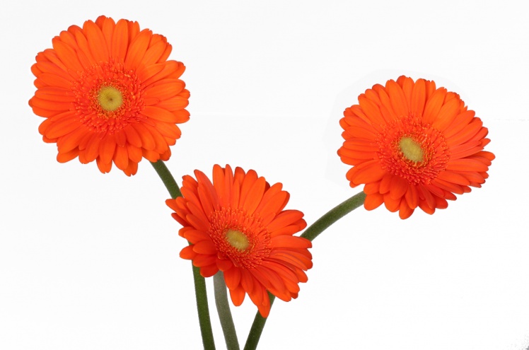 Оранжевая гербера с диаметром цветка 10-12 см и длиной стебля 50-60 см. Красивый цветок семейства астровых, напоминающий большую ромашку.Поэтому цветок имеет второе название - transvaal daisy — «трансваальская ромашка». Цветок кажется очень естественным и простым, "природным", но в то же время он довольно крупный и пышный.